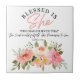 Luke 1:45 Blessed is She Floral Scripture Ceramic Tile
