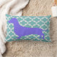 Unique lumber cushion with a purple silhouette of a dachshund on the front & back.