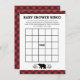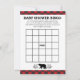 Play bingo at your lumberjack themed baby shower! Guests fill in these bingo cards with the gifts they think the mum-to-be will receive. When She opens her gifts, they mark off matching items. This design features a cute baby bear with some woodland foliage and a buffalo plaid border. The back of the card is also buffalo plaid. There is a Coordinating baby shower invitation also available at the store.