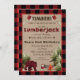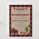 Invite guests to your little one's lumberjack themed birthday party with this fun invitation. It's got a watercolor effect, pine trees, axes, a bear, logs and more to give that authentic in the woods feel to it.