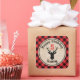 Lumberjack boy birthday party favour sticker with a reindeer's head icon personalised with your child's name & birthday message.