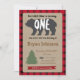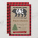Lumberjack First Birthday Invitation with red buffalo plaid.