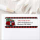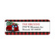 The border on this cute Christmas return address label for anyone who loves to camp is a red and black buffalo plaid pattern. The interior has a white banner with a matching red and black plaid camper trailer carrying a green freshly cut Christmas tree. Your custom text is in red and black at the right of the camper image.