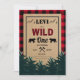 Celebrate you little one's first birthday with this custom Lumberjack First Birthday, Wild One invitation. Featuring a red and black buffalo plaid and kraft paper background with bear and axe silhouettes.