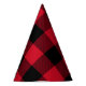 Celebrate you little one's first birthday with this custom Lumberjack First Birthday, Wild One Party Hat. Featuring a red and black buffalo plaid and kraft paper background with bear and axe silhouettes.