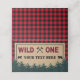 Celebrate you little one's first birthday with this custom Lumberjack First Birthday, Wild One Place Card. Featuring a red and black buffalo plaid and kraft paper background with bear and axe silhouettes.