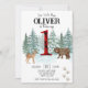 Lumberjack First Buffalo Plaid Bear Birthday Invitation