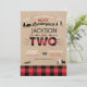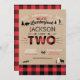 Fun lumberjack birthday invitation featuring drawings of trees, mountains, and animals