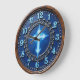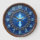 Make a powerful and inspiring statement of faith with this high-energy religious wall clock. The central design features a striking, luminous light-blue cross set against a deep azure backdrop with radiating sunburst lines. The cross is elegantly framed by intricate faux-metal scrollwork and a circular border of studded accents. While the outer rim beautifully mimics the appearance of weathered, dark-stained timber and the numeric markers look like raised sky-blue carvings, this is a lightweight and durable graphic timepiece rather than actual wood or heavy metal. The bold, light-blue numbers provide exceptional contrast against the dark face, ensuring the time is easy to read at a glance. The artwork utilizes expert shading to create a stunning 3D-style depth, giving the piece a polished and professional look. This timepiece is a perfect focal point for a living room, study, or sanctuary.