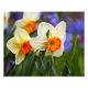 A luminous spring garden setting featuring creamy daffodils with orange centres.