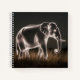 Luminous Elephant Silhouette, a photograph of a silhouette of a luminous elephant. The elephant's body is illuminated, with the light highlighting the majestic height of its trunk and the arch of its back. The elephant is standing in a field of tall grasses, which are also illuminated. The background is a solid black. The lighting creates a sense of grandeur.