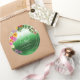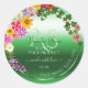 Make a lasting impression with this lovely and elegant monogrammed product label design featuring many different colourful flowers on a luminous green gradient background with a shimmery frame.