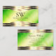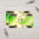 Luminous Green Marble Gold Borders with Monogram Business Card