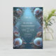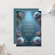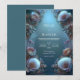 Invite your guests to a world of celestial wonder with this breathtakingly atmospheric botanical scene. The design features a symmetrical arrangement of large, luminous ivory bloom petals with intricate, textured centres that seem to glow from within. Soft dusty rose and peach blossom accents are nestled among feathery, ethereal botanical sprigs and delicate lavender-toned buds, all set against a deep midnight teal gradient that creates a sense of magical, nocturnal depth. This wedding invitation is the premier choice for a celestial-themed ceremony, a romantic evening garden event, or a modern fantasy celebration. These motifs ensure your event details are presented within an otherworldly and sophisticated atmosphere that sets a truly unforgettable tone from the moment the envelope is opened.