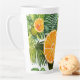 The picture unfolds a bright melody of lush green monster and palm leaves, combining with juicy orange slices and exotic fruits in bright yellow and orange. The lively contrast on a bright background gives a cheerful tropical warmth that radiates energy and a touch of paradise.