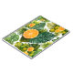The picture unfolds a bright melody of lush green monster and palm leaves, combining with juicy orange slices and exotic fruits in bright yellow and orange. The lively contrast on a bright background gives a cheerful tropical warmth that radiates energy and a touch of paradise.