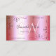 Make a lasting impression with this elegant and luxurious business card design featuring pretty shimmery ornate corner borders with cute hearts on a luminous pink and green colour gradient background.