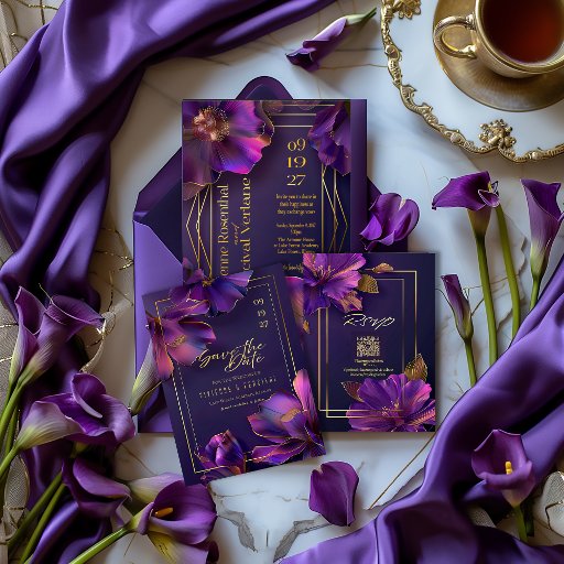 Designed to coordinate seamlessly with the rest of the Luminous Violets Collection, this piece helps create a cohesive wedding aesthetic from invitations to day-of stationery. The table number is fully editable, allowing you to personalize each card for your seating layout while preserving the luxurious look of the design.