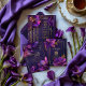 Printed on both the front and back, this card is ideal for guest tables, reception décor, sweetheart table styling, and elegant venue presentation. Its dramatic floral artwork and timeless gold accents make it especially fitting for purple and gold weddings, formal ballroom receptions, and modern romantic celebrations.