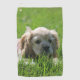 The golf towel exceeded my expectations! My husband actually approved of it! He liked the picture quality, thickness and overall usefulness of the golf towel I ordered to commemorate his lowest ever golf score. He liked it so well that I ordered 8 more towels with photos of his home golf course. Each one of the eight has the name of one of his golf group members. I will give them as party favors at my husband's 70th birthday party later this year. The different names were easy to add because the Zazzle template is so very easy to use. The colors were bright and authentic in all 9 of the towels that I made. The one of the 9 that I ordered has come out of the wash and line dry looking great.