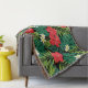 Luna Hibiscus Garden Hawaiian - Red and Black Throw Blanket