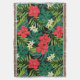 Red, Evergreen, Lime, Yellow and Black colorway. Hibiscus and plumeria flowers dance over a backdrop of monstera and palms leaves. These flowers are commonly used in apparel for aloha shirt and muu muus creating a design reminiscent of the Hawaiian prints of the 50s and 60s. Great for home decor for that beach house. This design comes in several colour ways.