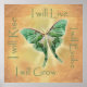 This inspirational poster features a watercolor style image of a graceful, pale green Luna Moth, floating against a golden sky and the affirmations, "I will grow, I will evolve, I will live, I will rise".