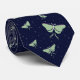 A midnight-blue necktie featuring ethereal luna moths against a starry night.