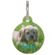 I looked through a lot of pet stores and web sites then I saw Zazzle and a tag with guitars in the background so we added his name and photo o nether front and our phone numbers on the back. It was beautiful and unique just perfect