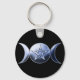Triple goddess symbol, three lunar phases. Full moon with pentagram, waxing and waning moon. Mystical, translucent blue on black. Womankind, Mother, maiden and crone. Gift for Wiccans and neo-Pagans.