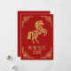 Celebrate the Year of the Horse 2026 with this stunning red and gold Chinese New Year card. Featuring a bold golden horse adorned with traditional Chinese decorative patterns, this design symbolises strength, vitality, and prosperity. The intricate details and rich red background embody good luck and happiness, making it the perfect card to share New Year blessings with family, friends, and loved ones. An elegant keepsake that combines modern style with timeless tradition for the Lunar New Year. Also available as digital invite!