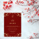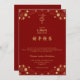 This is a beautifully designed invitation for a Lunar New Year event. The card has a rich red background that symbolises luck and joy, complemented by intricate gold hexagonal patterns and floral motifs, symbolising prosperity and good fortune. At the top, a golden lantern icon highlights the theme of illumination and tradition.
