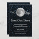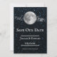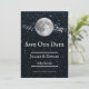 Personalise a unique wedding announcement with a Lunar Save the Date. Announcement design features a starry night sky adorned with a full moon and star cluster trail and text you can personalise with your wedding date details. Additional save the date announcement available for this design in a variety of colours.