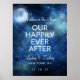 Lunar Sky Full Moon Celestial Galaxy Watercolor Design, with Night Shining Stars, and Glowing Moon Design on a luxurious Navy Blue, Pale Blue, and hints of purple watercolor texture. With Modern Typography Script Fonts. A trendy Magical design - Personalized Wedding Reception Welcome to our Happily Ever After Sign!