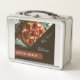 This is a standard metal lunchbox that appears to work just fine. We designed this box ourselves with an uploaded photo and custom text on the front and back. It looks absolutely beautiful except the front of the lunchbox is not centered like it shows in the photo. The print borders don't align with the inset flat part of the box where the preview photo online showed it perfectly centered in there. The back looks nice and centered though.