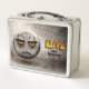 This is a standard metal lunchbox that appears to work just fine. We designed this box ourselves with an uploaded photo and custom text on the front and back. It looks absolutely beautiful except the front of the lunchbox is not centered like it shows in the photo. The print borders don't align with the inset flat part of the box where the preview photo online showed it perfectly centered in there. The back looks nice and centered though.