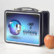 This is a standard metal lunchbox that appears to work just fine. We designed this box ourselves with an uploaded photo and custom text on the front and back. It looks absolutely beautiful except the front of the lunchbox is not centered like it shows in the photo. The print borders don't align with the inset flat part of the box where the preview photo online showed it perfectly centered in there. The back looks nice and centered though.