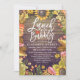 Lunch & Bubbly / Brunch and Bubbly Bridal Shower Invitation Card Templates - Autumn Maple Leaves, Pumpkins and Sunflowers Watercolor Flowers on Rustic Wood Background.