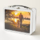 This is a standard metal lunchbox that appears to work just fine. We designed this box ourselves with an uploaded photo and custom text on the front and back. It looks absolutely beautiful except the front of the lunchbox is not centered like it shows in the photo. The print borders don't align with the inset flat part of the box where the preview photo online showed it perfectly centered in there. The back looks nice and centered though.