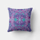 Throw pillow featuring whimsical arabesque pattern, stylised lupine flowers and leaves, bohemian / ethnic / hippie / vintage style. This design was elaborated from hand drawn acrylic painting. Colour palette: purple, violet, magenta, mint green. © Clipso-Callipso / Julia Khoroshikh #bohemian #oriental #arabesque #damask #zazzlemade #bedding #pillows #throwpillows #bohemiandecor