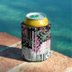 Lupines on a patchwork black and white background can cooler