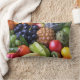 Photograph of a variety of colourful fruit printed to the edges of the pillow.