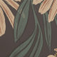 A rich large daisy pattern with green foliage on a charcoal grey black background. peel and stick wallpaper. Create an accent wall or apply peel and stick wallpaper to a variety of surfaces. Rich warm hues.