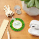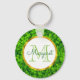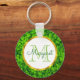 A keychain with a fresh springtime design with a field of lush green clover with dainty little water drops. Personalise with your name and monogram initial in the centre on a white frame with a FAUX gold foil border.