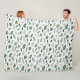 Lush Green Leaves And Flowers on White Fleece Blanket