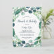 This lush greenery and eucalyptus brunch and bubbly invitation is perfect for an elegant backyard wedding shower. The modern botanical design features gorgeous watercolor blue eucalyptus and green leaves.