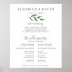 Wedding program sign with green floral leaf.