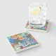 The coasters are gorgeous, a quality feel and heavy weight. They look like a precious archeological find. A rustic stone juxtaposed with a modern floral black and white print. I like the way the print goes slightly imperfect on the cut stone edges giving them a kind-of natural beauty.