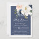 Lush Magnolia Rose Navy Blue & Blush Baby Shower Invitation