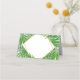 Our bright and bold palm tree leaf place card with an asymmetrical geometric border and custom text on the back will make a modern statement at a destination wedding or tropical theme party.